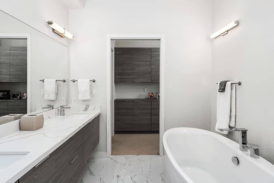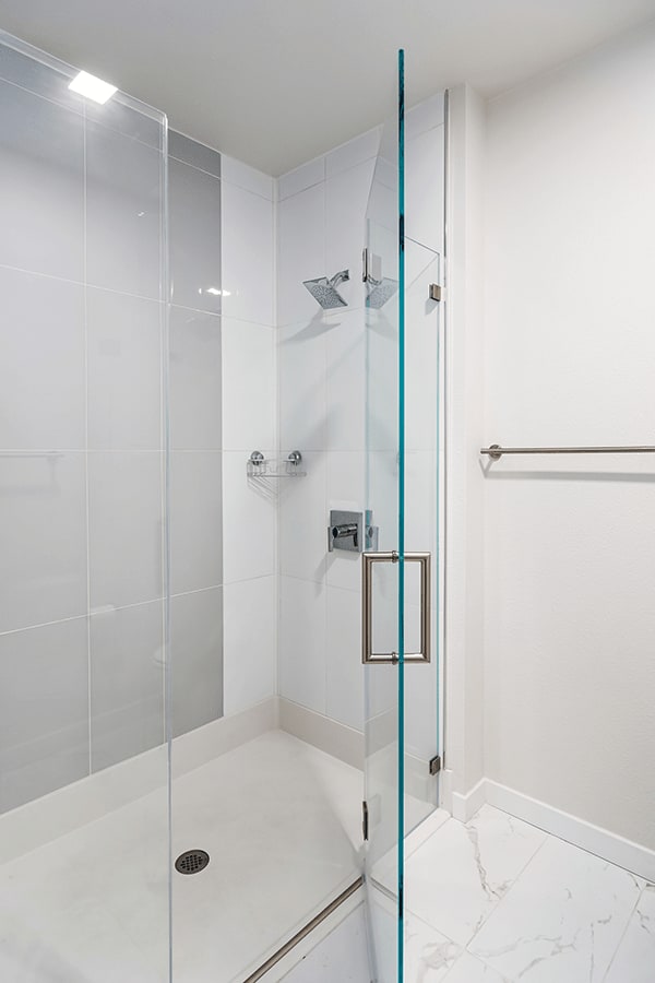 Shower doors in both bathrooms feature custom crystal-clear tempered glass and are diamond fusion treated.