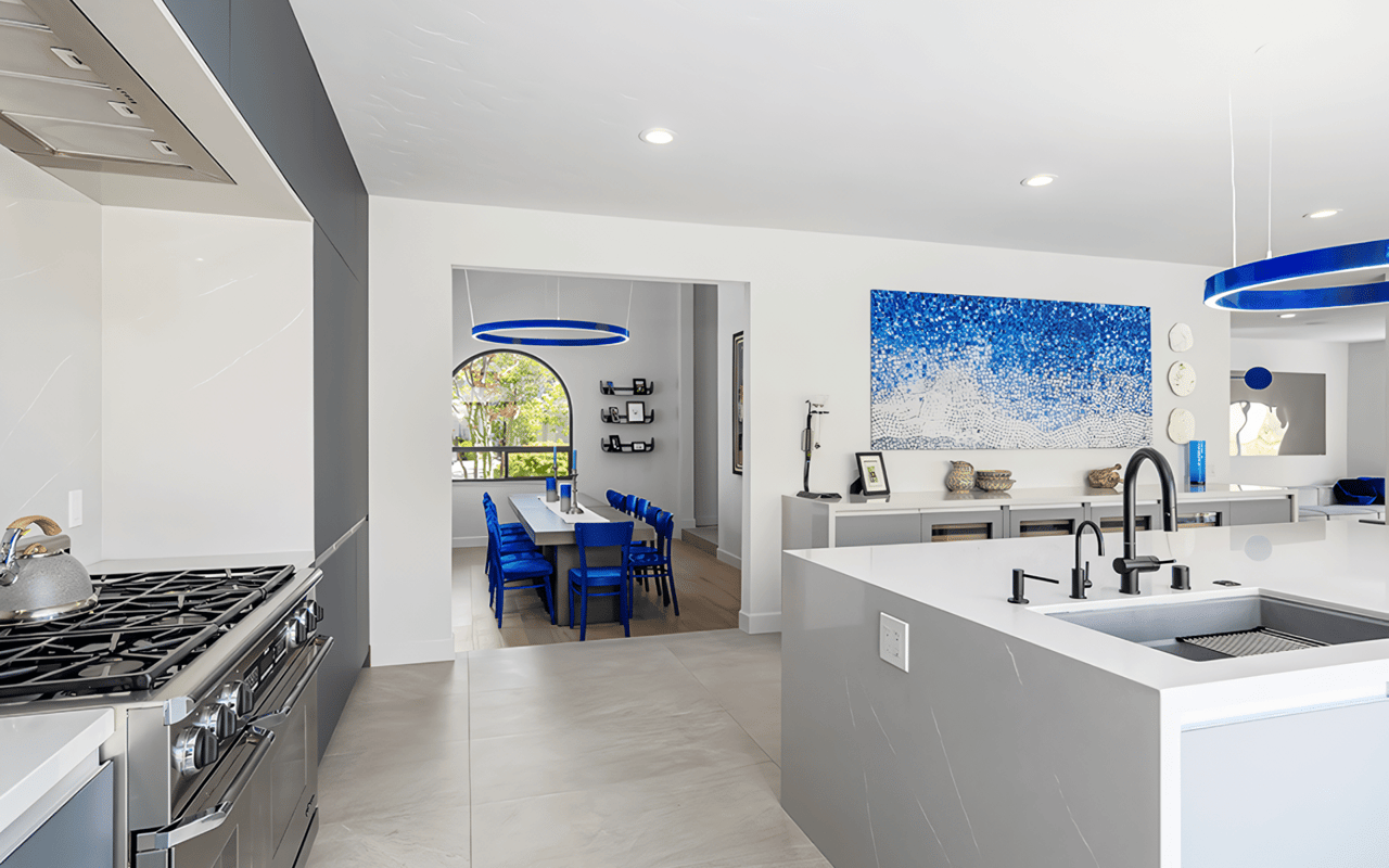 A masterpiece of contemporary art created by the Parisian design firm Crosby Studios under the tutelage of world-renowned designer and interior architect Harry Nuriev is a spectacular home design tucked within the gates of the Blackhawk Country Club. More than a half-million-dollar renovation transformed the ordinary into an extraordinary 4,022-square-foot, two-level home showcasing masterful custom finishes throughout a fabulous open-concept design with spacious entertaining venues and inviting gathering spaces. From porcelain tile and Old World Provenza engineered hardwood floors and Old-World textured walls to soaring ceilings and built-in furniture, this home presents a new level of luxury. Slide open the 16-foot sliding French door for a seamless flow to an ultra-private outdoor retreat bordering open space. Enjoy the peaceful setting around the newly replastered pool, spa, and outdoor entertaining at the built-in grill and the Chicago Brick pizza oven.