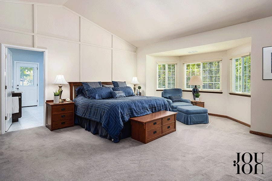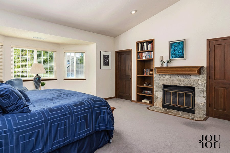 With a gas fireplace, and front-facing sitting area, and a sizeable walk-in closet, you may not want to leave your room.