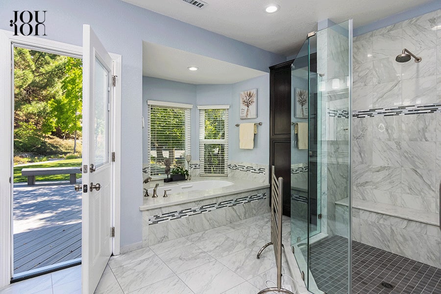 Pamper yourself in the luxurious en suite completely updated with a heated porcelain tile floor, a dual-sink vanity with a quartz counter, beautiful cabinetry, a heated towel rack, a Toto™ toilet with a heated seat, and the convenience of instant hot water. The oversized shower features dual showerheads plus a large bench. The jetted tub is equipped with a specialized pump to maintain water temperature throughout your soak.