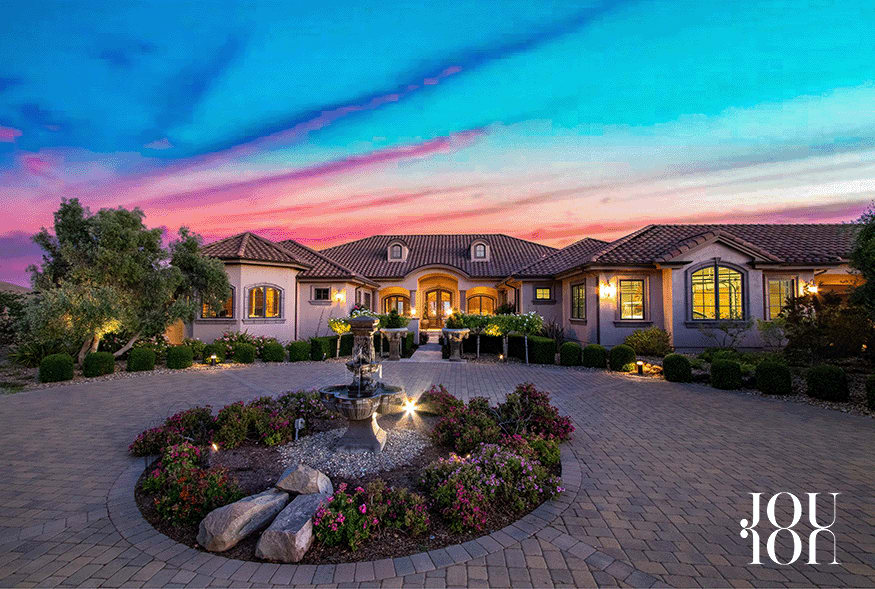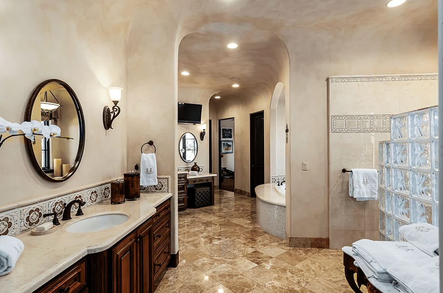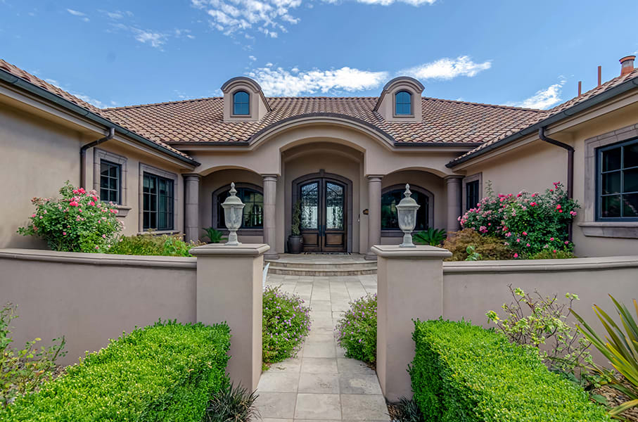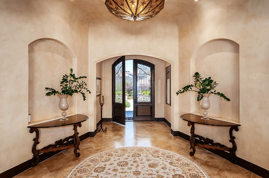 Layers of luxurious amenities and finishes unfold throughout its 8,144 square feet of living space, enhanced by interior designer, Sandra Brown’s, eye for architectural detailing, including arched entries and stately columns and the awe-inspiring resort-style outdoor venues and gardens designed by master gardener Ronell Ialeggio.