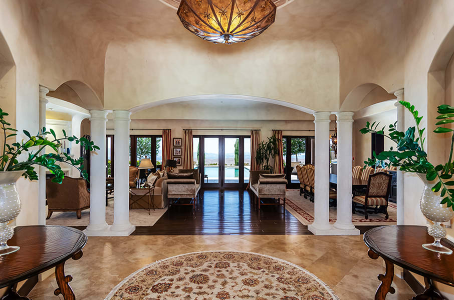 Enter a magnificent foyer illuminated by a custom-designed chandelier and be awestruck by the captivating views.