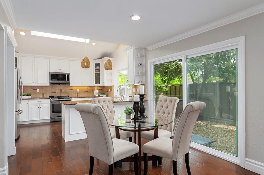 The adjacent formal dining room has been expanded and can easily accommodate large gatherings. Slide open the glass door to move the party to the backyard.