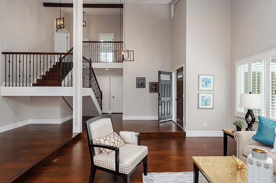 The sprawling corner lot is just the beginning of this home’s numerous qualities, including refreshed front landscaping, fresh exterior paint, new garage doors, and an inviting slate tile porch. Behind the double front door entry are generous-sized rooms bathed in natural light with soaring ceilings, hardwood floors, decorative trim, crown molding and baseboards, recessed lights, decorative staircase ironwork, plantation shutters, fresh interior paint, and stylish fixtures.