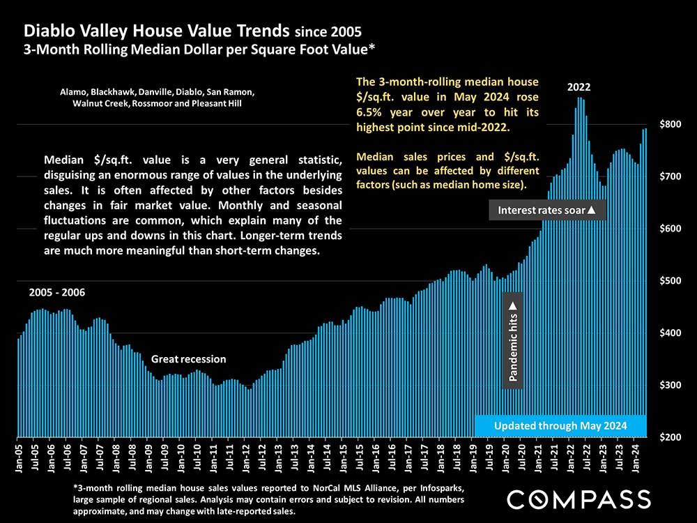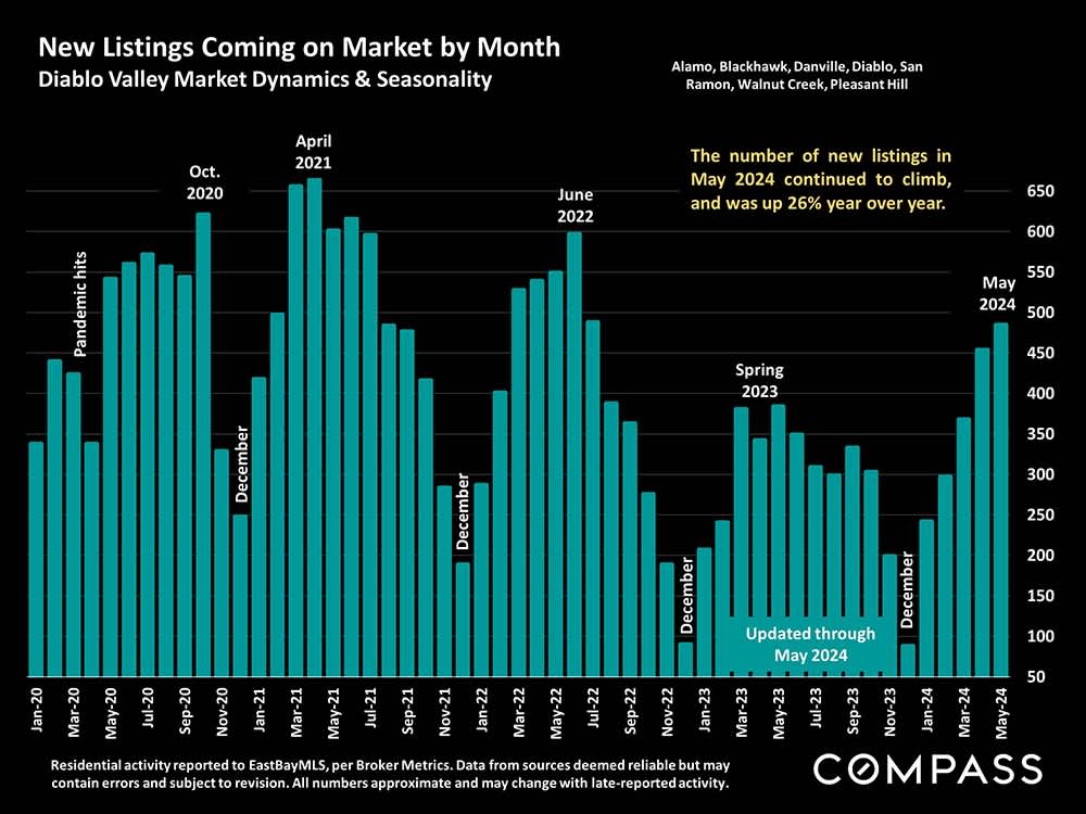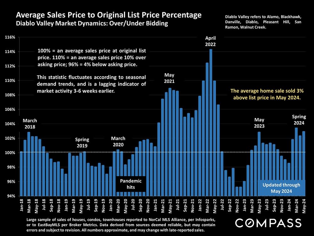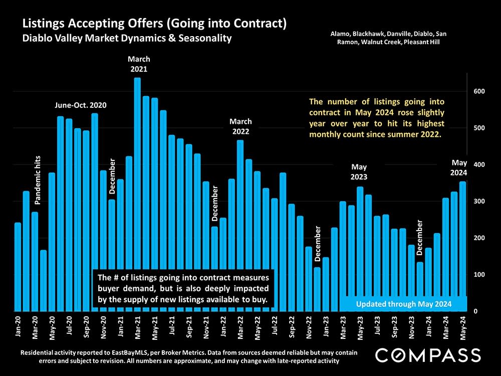 Note to Sellers: Several homes that were listed in Danville, Alamo, and Diablo since the beginning of May are still available and averaging 17 days on the market. If your home is listed and doesn’t sell in a week or two, there is no need to panic. The market is constantly changing and therefore, you need to adjust to the market conditions. Changes in demand, interest rates, and inventory can all impact your home. Some homes sell quickly, but this type of situation is very property-dependent. However, as consumers, we see these homes and tend to assume that it is the norm, but as I always say, each home and transaction is a unique experience. As a seller, keep an open mind and be willing to discuss price improvements and adjustments to keep the buyer market engaged.
