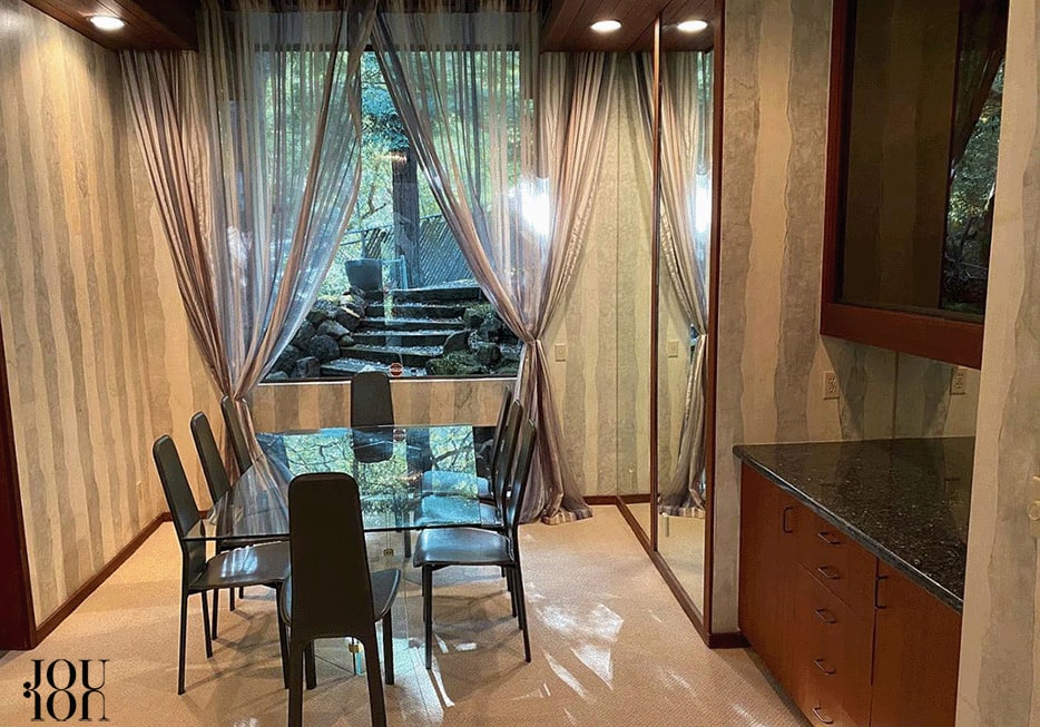 Formal dining room with view window.