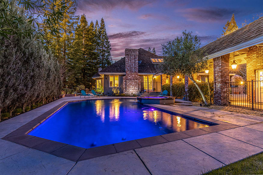 Large formals, updated kitchen, pebble tec pool, spa, and more on a ±.49-acre corner lot. Custom millwork, fine finishes, 12-ft to vaulted ceilings, solid hardwood floors, 3 oversized fireplaces, multiple French doors ±5,025 sf. 4 bedrooms, 3.5 baths. Updated chef’s eat-in kitchen with granite counters, island, breakfast bar, Wolf™, SubZero™, GE™, and KitchenAid™ appliances. Lodge-style family room with vaulted ceiling and walk-around bar. Executive office. Private master bedroom wing, sitting room with fireplace. Master bathroom, marble finishes, dual sinks & walk-in closets. Bedroom + bath on the upper floor. Pebble tec pool & spa. Fresh landscaping. 3-car garage. Gated Country Club is located near 2 golf courses, tennis, pools, a fitness center, and clubhouses. Close to shopping, dining, downtown Danville, and San Ramon’s City Center. Easy freeway access from 680 corridor, near top-rated SRVUSD schools.