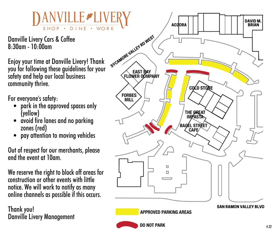 Danville Livery Cars & Coffee is the 1st & 3rd Fridays of the month from 8:30 am – 10:00 am. For updates, visit danvillelivery.com/media-alerts