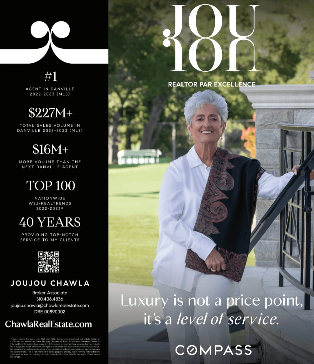 Joujou Chawla is a real estate professional known for her expertise in the luxury real estate market, primarily in the San Francisco Bay Area, including communities like Blackhawk, Danville, and Alamo. She possesses a range of very strong skills that are essential for success in real estate, especially in the luxury segment. Here are those skills: