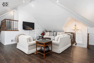 A vaulted ceiling adds volume to this generous space with wood-grain laminate flooring, recessed lighting, a dedicated HVAC zone, and a private entry from the garage and upper level. Create the ultimate hangout or game/playroom, a hobby room, a private home office, and more.