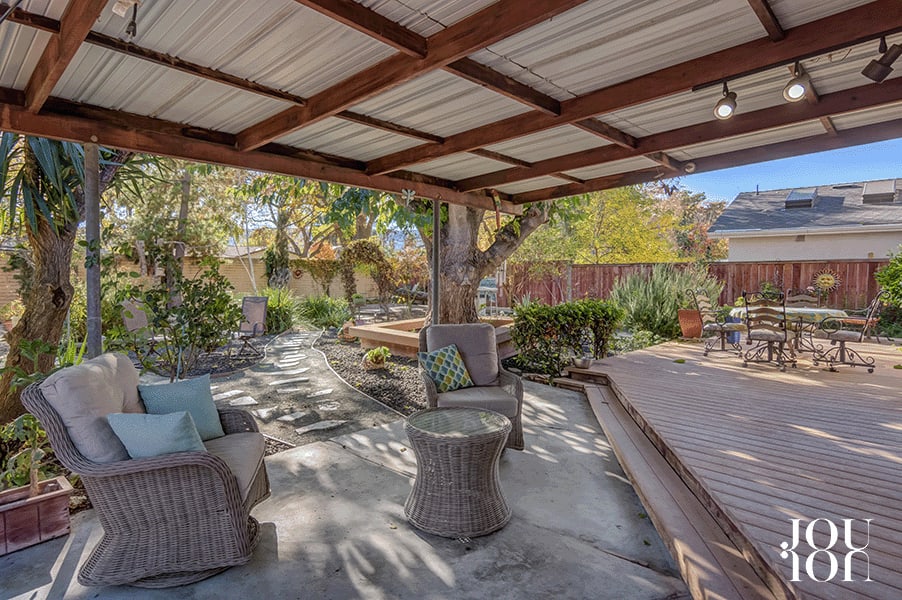 Slide open the glass door to access the fantastic backyard space that features a covered Trex™ deck, expansive gardens, and pathways under the canopy of a shade tree. You can customize your unique lifestyle with room for a pool, spa, outdoor kitchen, play structure, and more.