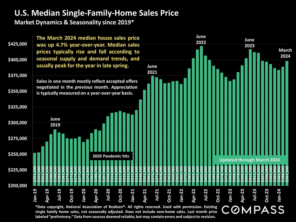 The U.S. median house sales price increased in March and will almost certainly continue to rise in the coming months. Its all-time high occurred in June 2022.