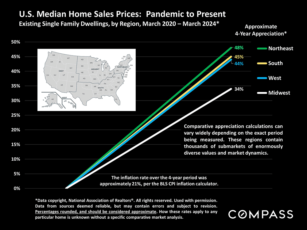 National regions have all seen dramatic appreciation rates over the past 4 years, running far above the CPI inflation rate during the period.