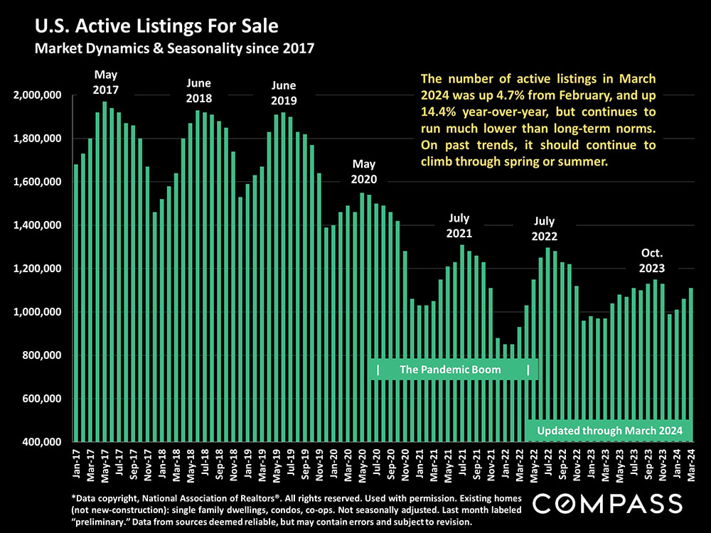 New listings are the lifeblood of the market and, happily, the number has been climbing rapidly. Though still considerably below long-term norms, 2024 will probably see a substantial increase in inventory over last year.