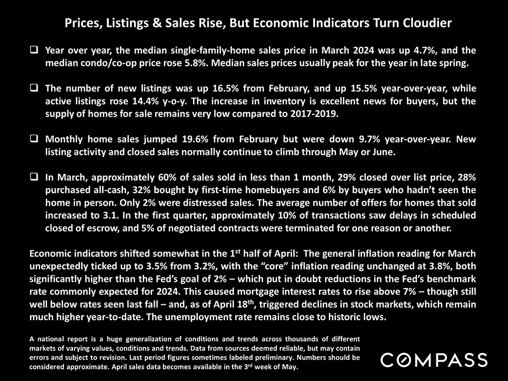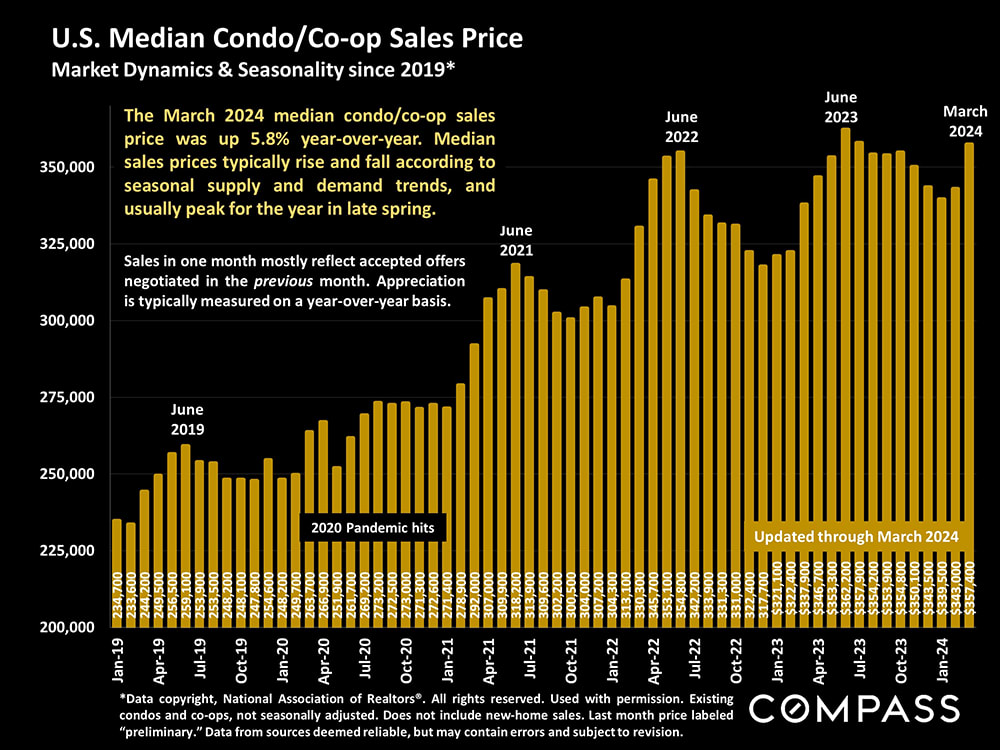 The median condo/co-op sales price jumped from February and rose on a year-over-year basis. Its all-time high was in June 2023, but, on current trends, it appears that may be surpassed in Q2 2024.