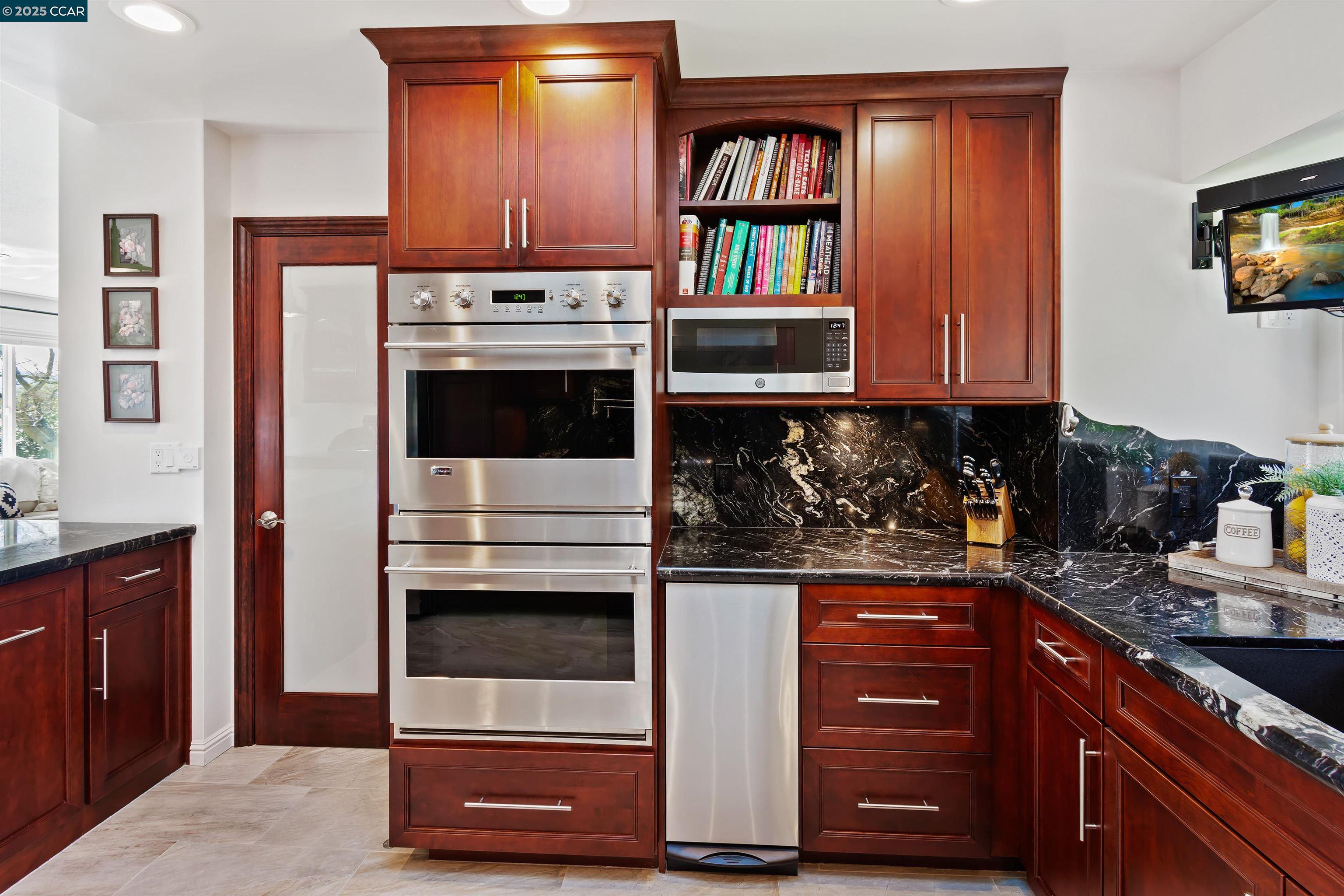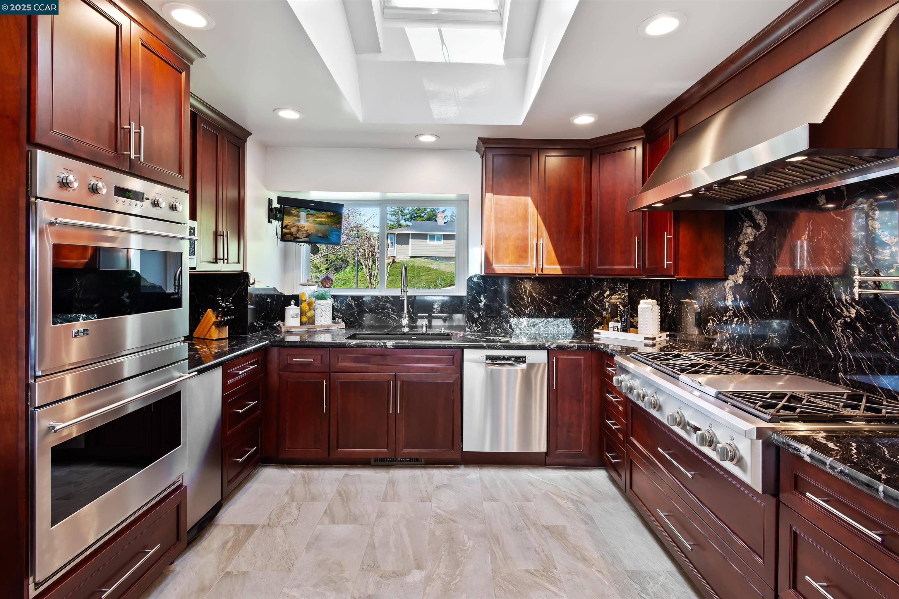 More than a half-million dollars in masterfully crafted updates inside & out shine at Alamo's Monte Sereno home. Cul-de-sac location walking distance to Monte Vista HS & half-mile of Oak Hill Park. Panoramic ridgeline & Mt. Diablo views, optimal southern exposure from .46 acres. Inviting bkyd sanctuary. Ipe & Timbertech decks, gazebo, refinished saltwater, solar-heated Hawkins pool. Outdr kitchen. Lush landscape. 2605+/-SF. Bamboo/porcelain tile flrs. Milgard & Andersen windows & drs. Solid int. drs. Decorative ironwork banisters. 4 bds 3 bths incld pvt guestrm & bth w/pool access. Executive office. Chef's kitchen. Omega cabinets, granite counters/bksplsh, breakfast bar. GE Monogram appliances incld 48-inch cooktop w/pot filler, dual ovens. Operable skylight w/remote shade. Walk-in pantry. Adjacent dining w/built-in buffet. Living rm w/gas frpl, motorized blinds, vaulted ceiling. Family rm/media rm w/surround sound. Primary suite w/views, custom closets. Dual-sink vanity, sconces, recessed lights, air bathtub & shwr w/decorative tile. Park-like front landscape. Paver driveway. Clay tile roof. Hardie plank siding. 3-car garage w/overhead racks, epoxy flr. 2 storage rms ideal for workshop/wine cellar. Dual-zoned HVAC. Easy freeway & downtown access, near top-rated SRVUSD schls.