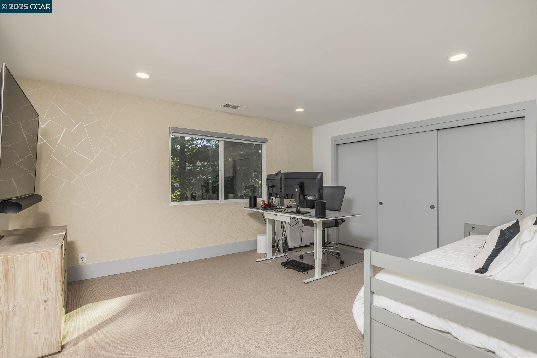 Captivating panoramic Mt. Diablo hillside & golf course views from impressive contemporary gated Blackhawk Country Club estate. 5,423+/-SF two-level open-concept floorplan + 919+/-SF two-level, 1 bd, 1 bth guest house on .84 acres. 5 bds, 4.5 bths in main house incld main-level primary & guest suites. 3 upstairs bdrms incld 1 w/en suite. Fleetwood glass pivot front entry. White oak hardwood floors. New bdrm carpet. Soaring ceilings. European-style cabinetry. Multiple skylights. Linear gas recessed fireplaces. Walls of windows. Smooth wall finish. Glass & stainless railing. Primary ste w/pvt deck, dual-sided gas fireplace, floating vanities, free-standing tub. Formal dining overlooking sunken living rm. Family rm w/vaulted ceiling, frpl, wet bar. Chef's eat-in kitchen w/Dekton counters, waterfall island, dual-toned European-style cabinets. Dual Wolf ovens, 6-burner cooktop, microwave, dual Bosch dishwashers, SubZero refrigerator. Private backyard w/pool, spa, pavilion & patio bordered by towering redwoods. Terraced hillside ideal for vineyard, decks, solar panels site. 3 HVAC. 2 wtr htrs. Off-street parking behind gate for 20+ cars. Near Falls golf course, tennis, swimming & fitness facilities. Close to freeways, downtown, Livermore Valley Wine Country, top-rated SRVUSD schools.