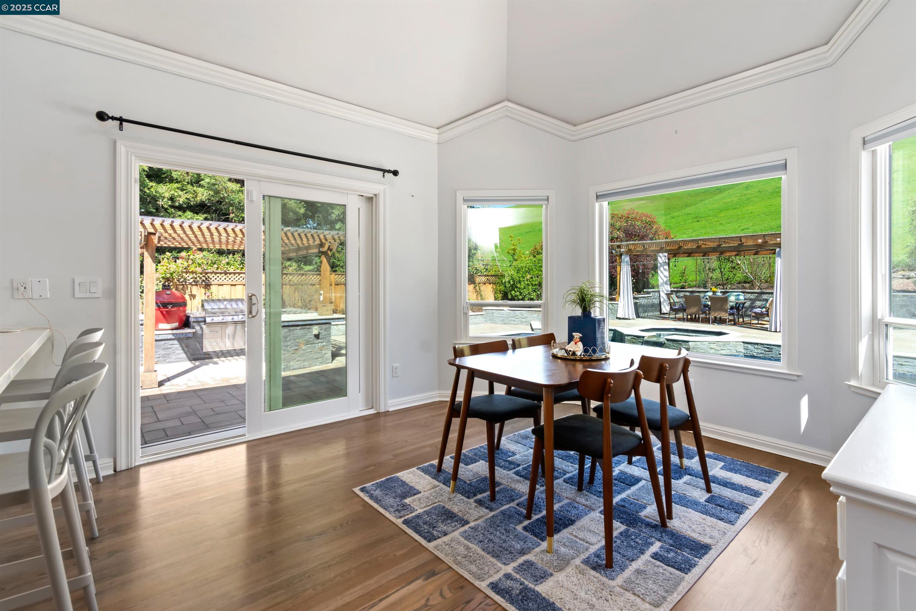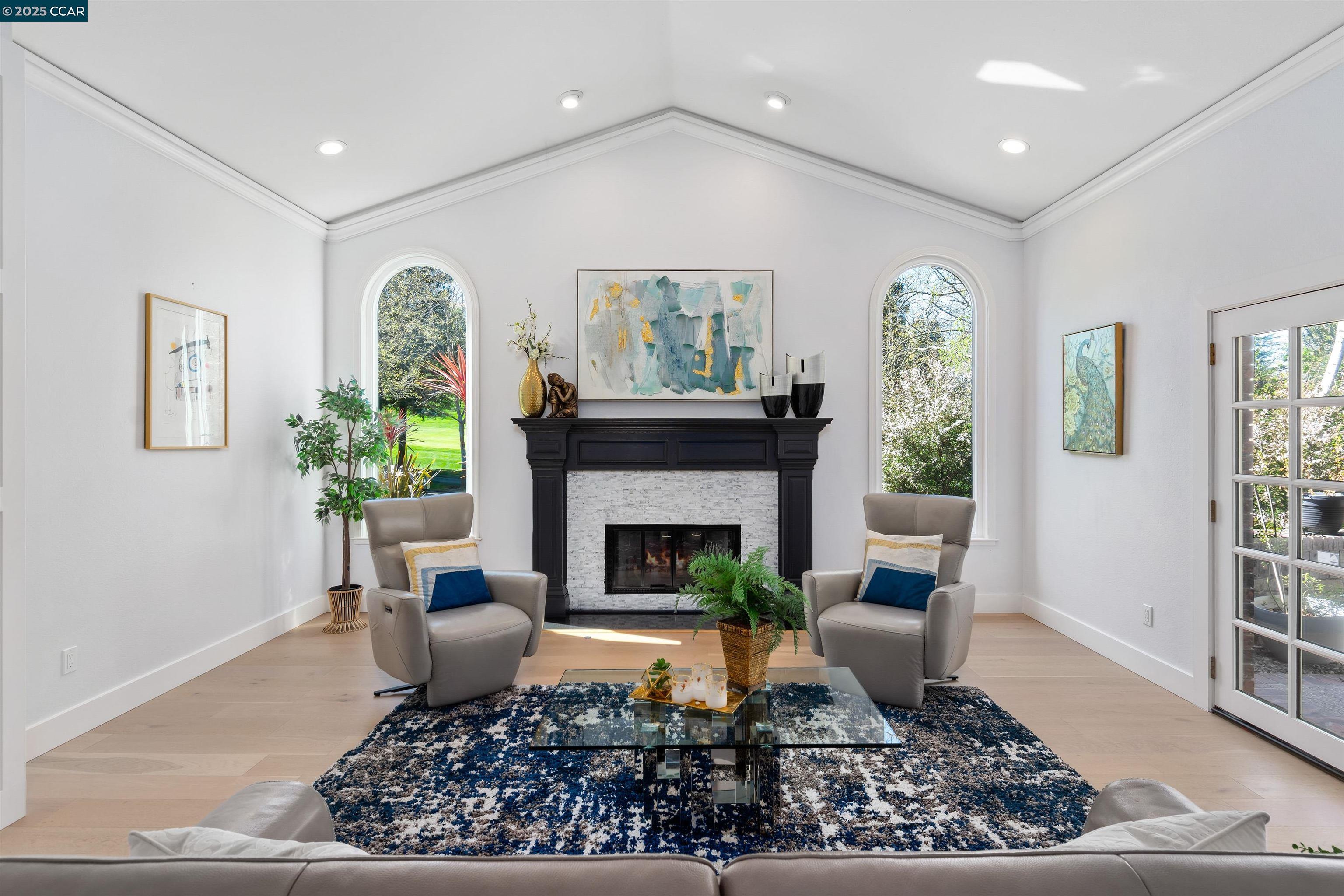 Recently renovated Blackhawk home faces Falls Golf Course fairway & borders open space. 5101+/-SF on .41 acres. 5 bds, 3.5 updated bths. Generously proportioned, light-filled rms. Contemporary farmhouse style. Soaring ceilings, hardwd flrs, crown molding, wainscoting, LED lighting, designer paint colors. New roof (2021). Newer dual pane wndws. Owned solar. Formal living rm w/updated frpl, pvt patio. Formal dining rm. Chef's eat-in kitchen. Quartz counters, island, breakfast bar, dual-toned cabinets, subway & tile bksplshes, prep & farmhouse sinks. Stainless appls inclds new Samsung 4-door Flex frig w/AI Family Hub. 2 dishwashers. Expansive fam rm, frpl, walk-around wet br, sliders to bkyd. 3 main-level bdrms incld suite, 5th bdrm/office. Luxurious primary suite w/frpl. En suite w/dual-sink marble-topped vanity, free-standing tub, oversized shwr, walk-in closet. Ultra pvt backyard, paver patio, pebble tec pool, spa, waterfalls (2020) kitchen, Kamado Joe smoker, gas grill, frig, counter seating, dining pergola, playfield lawn, gardens, fruit trees, redwds. 4-car garage, epoxy flr, cabinets, 2nd frig. Dual HVAC (1 new 2024). Nest thermostats. Laundry rm. Near 2 golf courses, clubhouses, fitness ctr, tennis/pickleball cts, Sprts Complex. Blackhawk Plaza, downtown, freeways, SRVUSD.